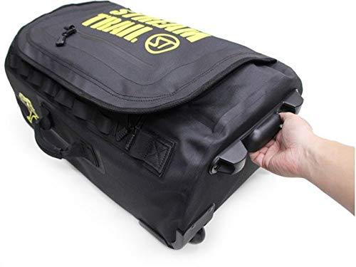 機内持ち込み可能!3~4日の旅行や出張にちょうどいいサイズのトロリーバッグ「CABIN TROLLEY ISE」。トロリーバッグ式で移動が楽なことに加え、着脱可能なショルダーベルトがついているためバックパックのように背負うことができます。バッグの本体は防水性のあるTPU素材を使用し、フラップは止水ファスナーを使用しているので多少の雨や不意に水がかかっても中身に沁みにくいです。フラップのファスナーはロックが掛けられる形状です。