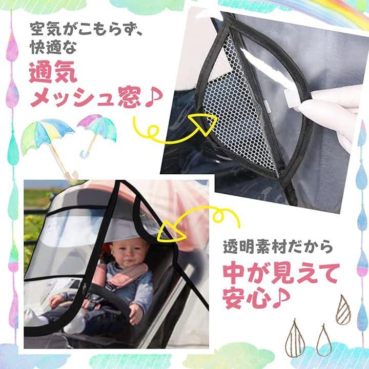 Stroller Rain Cover, Stroller Cover, Buggy Cover, Rear-Mounted, Type B, Universal, Front-Opening, Transparent, for Outings