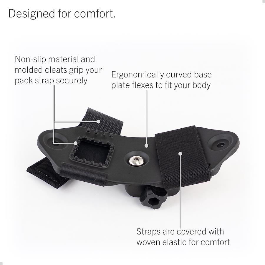 3営業日以内に発送≪新品未開封品≫:パックマウントは、バックパックやハイドレーションパックのショルダーストラップを、安定で、快適なカメラのマウントポイントに。あなたの肩の上に、またはあなたの胸の下に、左または右側にカメラを高く装着。バックパックは付属しません。アメリカ製。/360度のボールジョイントで、どんな方向にもカメラを回転。3つの取り付けポイントでカメラの高さ調整可能。/衝撃吸収性エラストマーで作られたベースプレートで、快適フィット、高品質ビデオのためにカメラの揺れを低減。2つのノンスリップストラップでショルダーストラップをしっかりグリップ。/GoPro, Ion, Sony Action Cam, 360fly, Contour, Drift Innovation, Garmin, ISAW, JVC, Kodak, Nikon, Olfi, Olympus, Panasonic, Ricoh, Rollei, SJCam, TomTom, Veho, Yi Technologyと互換。ユニバーサル1/4-20の三脚ソケットを持つコンパクトおよびハンドヘルドビデオカメラにも対応。/また、ジンバルまたは1/4-20 三脚マウントを使用する他のアクセサリーにマウントするためのダイレクトアダプタ付き。