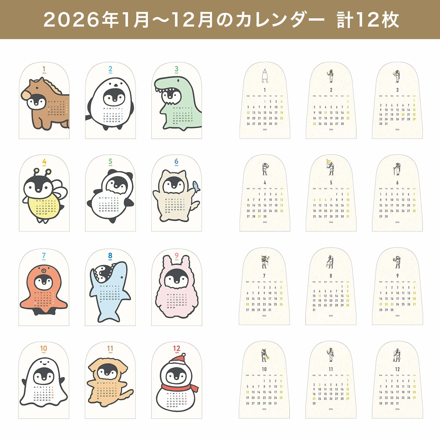 着ぐるみシリーズは、太っちょペンギンの赤ちゃんが毎月いろんな生きものに変装。うさぎやハチ、恐竜、オバケなど、ユーモアたっぷりで思わず笑顔に。