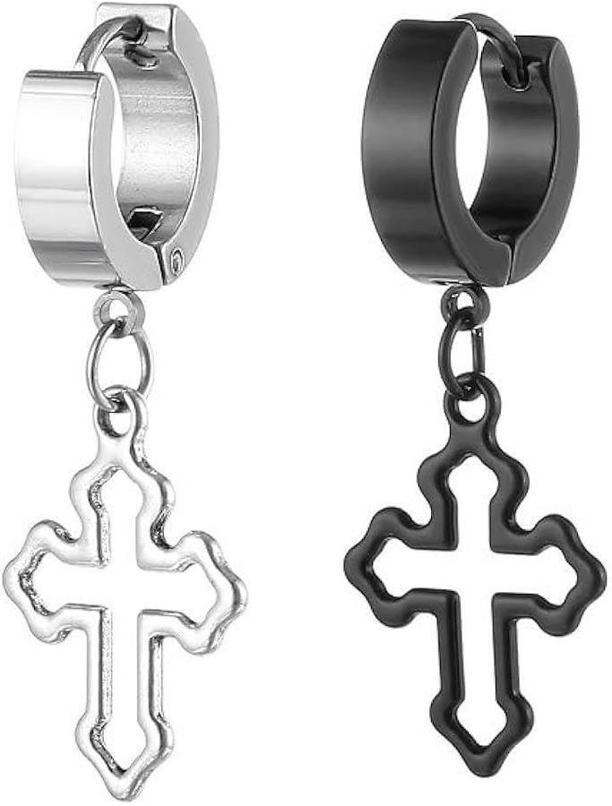 「デザイン」シルバーとブラックのカラーがクールな十字架のデザインがお洒落なピアス。