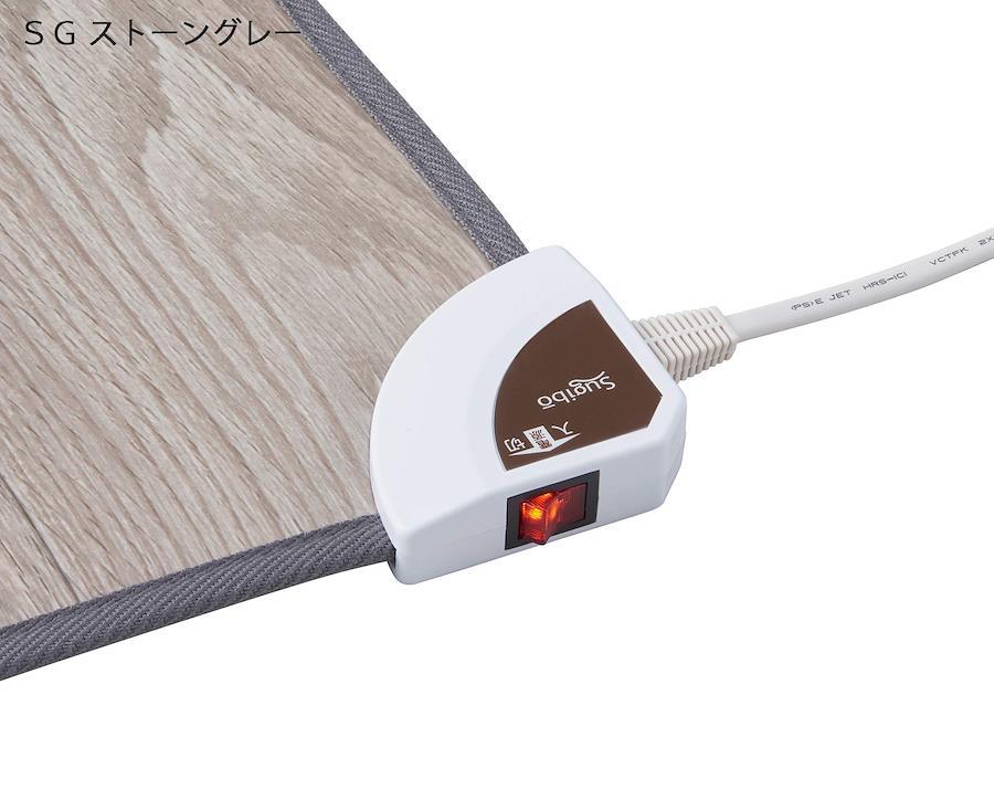 【SB-TM110仕様】 ●定格 交流100V-140W 50-60Hz共用 ●寸法 約60×110cm ●重量 約1.2Kg ●電源コード長 約1.8m ●表面材質 ポリ塩化ビニル、裏面材質 ポリエステル100%(すべり止め加工)●表面温度 45℃ ●温度調節方式 サーモスタット式 ●消費電力量(1時間あたり)70wh ●電気料金(1時間あたり)約1.9円 ●原産国 日本