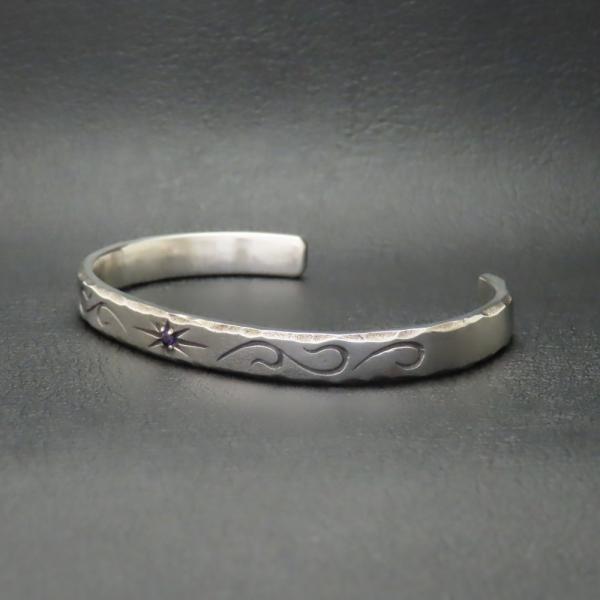【モチーフ】 唐草模様、アラベスク ◆モチーフ意味 「太陽」は自ら発光することから、あらゆる不幸や災いを跳ね飛ばす力があるといわれます。 その光や熱がなければ地球上の生き物は生きていけないので太陽は生命を与えてくれます。 そのため太陽モチーフには「魔除け、力強さと成功、発展・成長・エネルギー・生命力・治療の能力」などの意味が込められています。 唐草模様は葉や茎、植物が伸びたり絡んだりした植物の模様でツタは生命力が強く、途切れる事なく伸びていく事から「繁栄・長寿」の意味があります。 生命力、永遠に力強く伸びつづけるという、縁起の良いイメージとされてきました。 ◆商品名 太陽唐草バングル(BNG-7) ◆素材 シルバー925 スターリングシルバー ◆バングル幅 7mm ◆ストーン 直径2.0mm 下記の中からお好みの天然石・誕生石をお付け致します。 ・ガーネット ・ロードライトガーネット ・アメジスト ・アクアマリン ・ブラックダイヤモンド ・エメラルド ・ブルームーンストーン ・ルビー ・ペリドット ・サファイア ・アイオライト ・ピンクトルマリン ・シトリン ・ブルートパーズ ・タンザナイト ・オニキス ・ラピスラズリ ・ターコイズ ◆付属品 ジュエリーBOX、ショップ袋、品質保証書 *プレゼント梱包出来ます ◆実店舗 Grand Galleria(グランドガレリア) JR帯広駅より徒歩5分の場所にある2012年オープンのフラッグシップショップ。 ジュエリー工房を併設し、常駐する職人自らと打ち合わせも可能なため、修理や加工、お客様のご希望に沿ったジュエリーもお作りすることが可能です。 ◆オススメ使用シーン ・様々な贈り物に プレゼント 贈り物 誕生日 誕プレ 誕生日プレゼント バースデー バースデイ 御祝 御祝い お祝い 母の日 父の日 クリスマス クリスマスプレゼント Xmas 春夏秋冬 成人 成人式 卒業 卒業式 進学 就職 入学 金婚式 銀婚式 出産 結婚 開店 開業 定年退職 退職 移動 転勤 バレンタイン バレンタインデー バレンタインデイホワイトデー ホワイトデイ ごほうび ご褒美 御褒美 ・想いを込めて ありがとう 感謝 ごめんなさい 許して ごめんね よろしく おめでとう おめでとうございます 仲直り ・こんな方に 自分 彼女 彼氏 大切な人 大切な方 お父さん お父様 父親 親父 父 お母さん お母様 母親 母 兄弟 姉妹 子供 おばあちゃん 祖母 おじいちゃん 祖父 奥さん 妻 旦那 旦那さん 先生 生徒 職場 先輩 後輩 上司 部下 同僚 友達 友人
