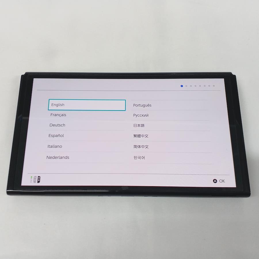 ■状態について動作確認、初期化済み。画面に保護フィルムが貼り付けてあります。ドックに黒い線状のキズがあります。Joy-Conグリップに使用感があります。