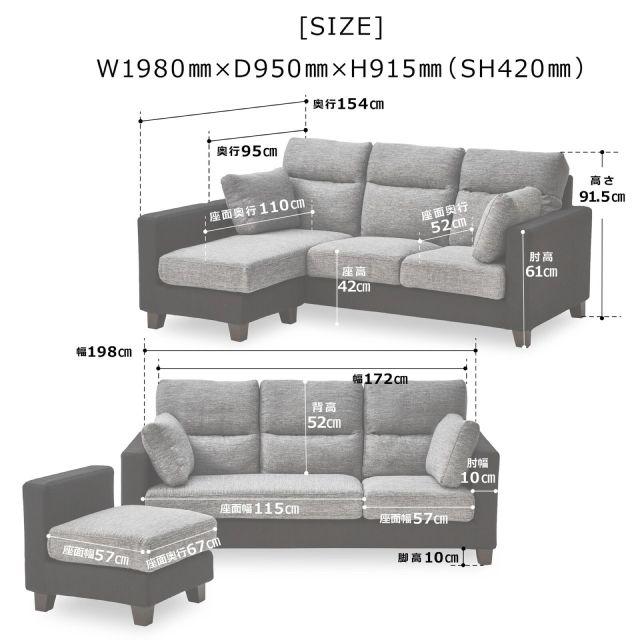 〈製品規格〉■サイズ:幅198.0×奥行95.0〜奥行154.0×高さ91.5cm×座面高42.0cm■重量:66.0kg■材質:ファブリック■組立:要組立品■生産国:中国