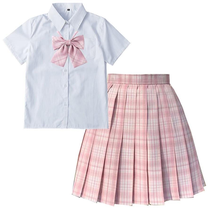 ?【制服3点セット】セット内容:プリーツスカート、半袖白シャツ、リボン。43CMのミニスカートの長さはフィギュアの黄金比を表しています、シャツは白の半袖シンプルなスタイルです、完全なガーリーな感じはあなたを群衆の中で常にCの位置にします。