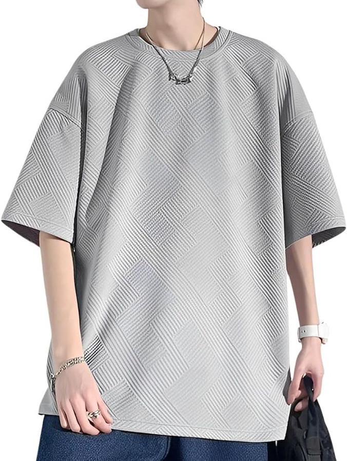 無地でシンプルながら凹凸のあるエンボス加工がカジュアルすぎずラフでおしゃれな雰囲気を醸し出してくれる大人のカットソーになっています