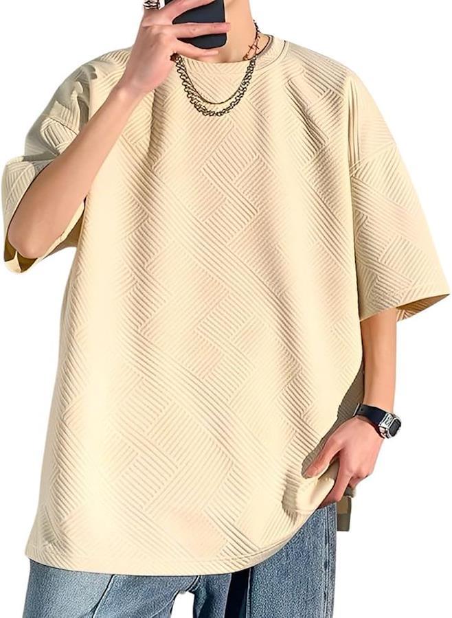 無地でシンプルながら凹凸のあるエンボス加工がカジュアルすぎずラフでおしゃれな雰囲気を醸し出してくれる大人のカットソーになっています