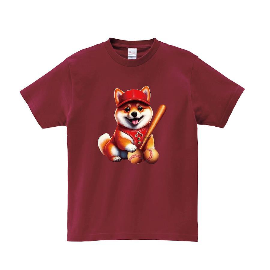 かわいい柴犬が野球をしているTシャツです。。※画像ははめ込み画像となり、実際とは多少異なりますので予めご了承ください。 ※サイズ表をよくご確認の上ご購入ください。 ※受注生産となるため、返品、交換はご遠慮ください。