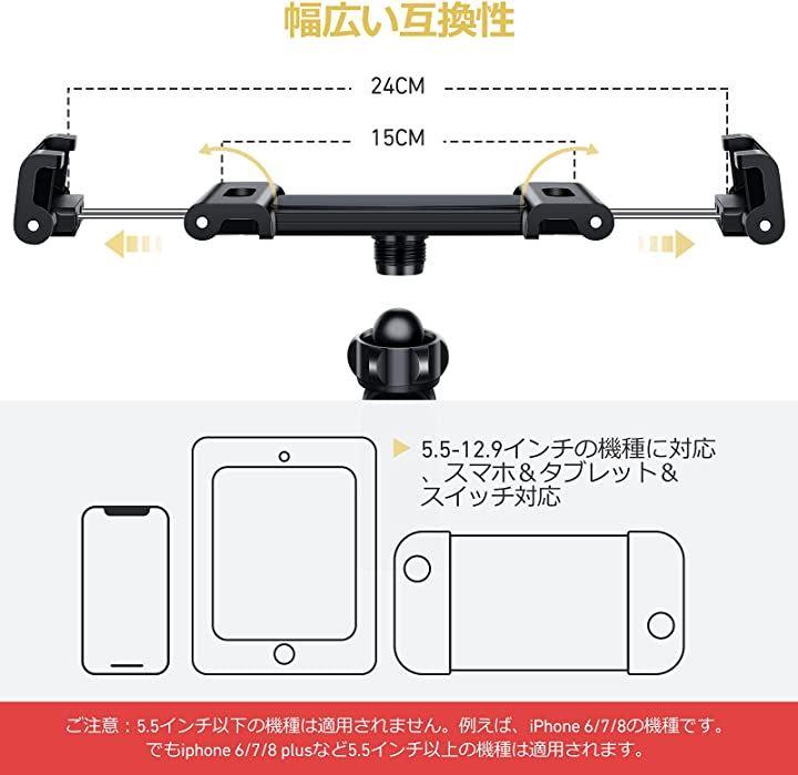 ・「アーム3段調整、高さと距離調整可能」ホルダーはクランプ式、スマホやタブレットをしっかりと挟むことができます。