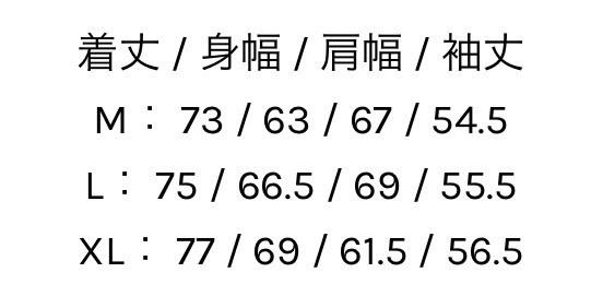 着丈/身幅/肩幅/袖丈XL : 77/69/61.5/56.5