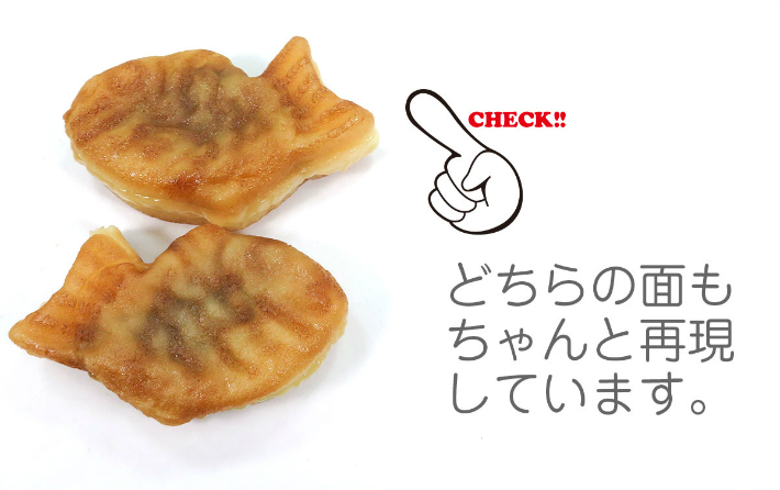 長さ6.5cmのミニサイズのたい焼きの食品サンプルアクセサリーです。中味のあんこが透けて見える所まで再現しています。もちろん裏も表もちゃんと作っています。