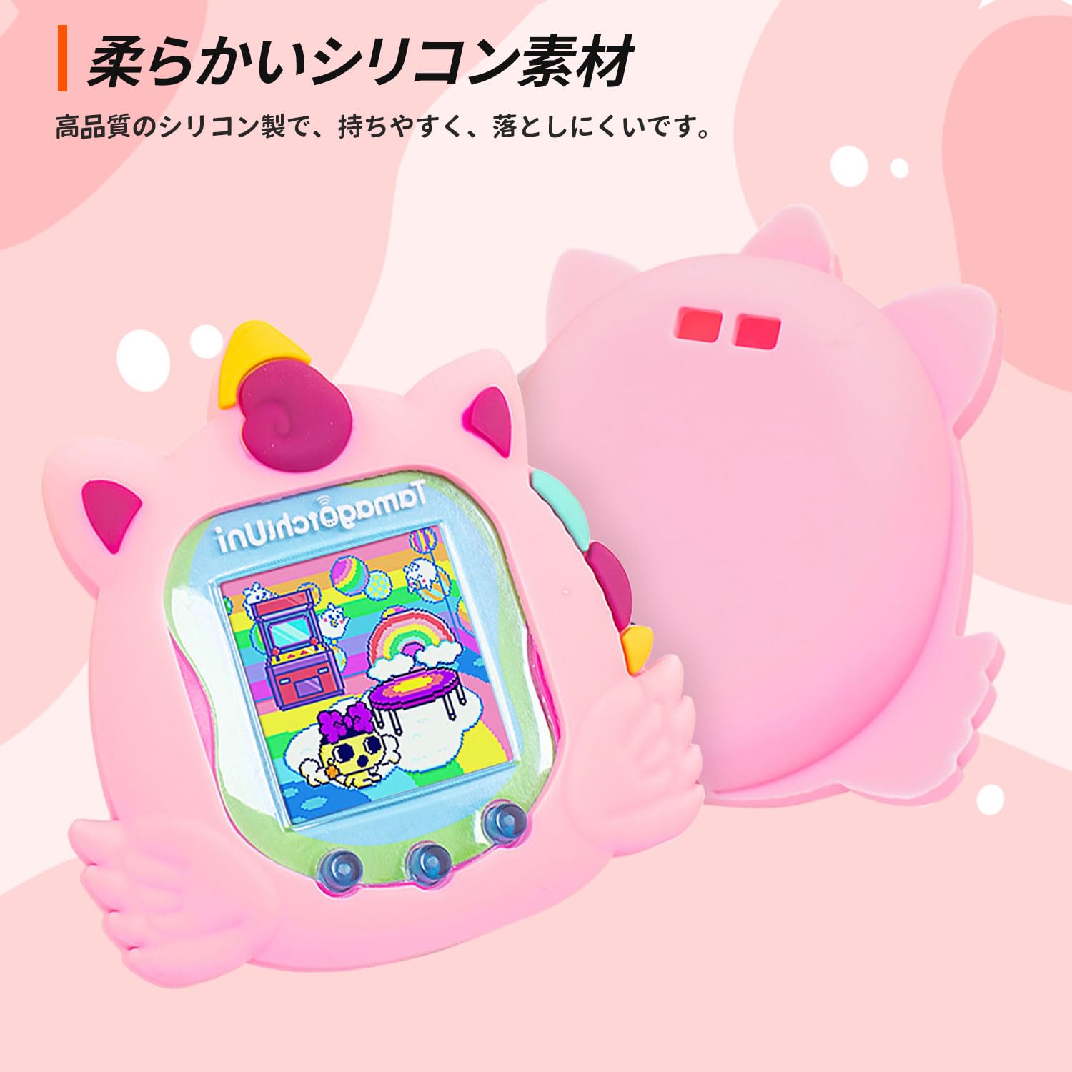 【対応機種】Tamagotchi pix 電子ペットおもちゃの対応ケースです。ケースの素材は、高い撥水製と弾力性に優れたシリコンを採用し、柔軟性があり優しい手触りです。