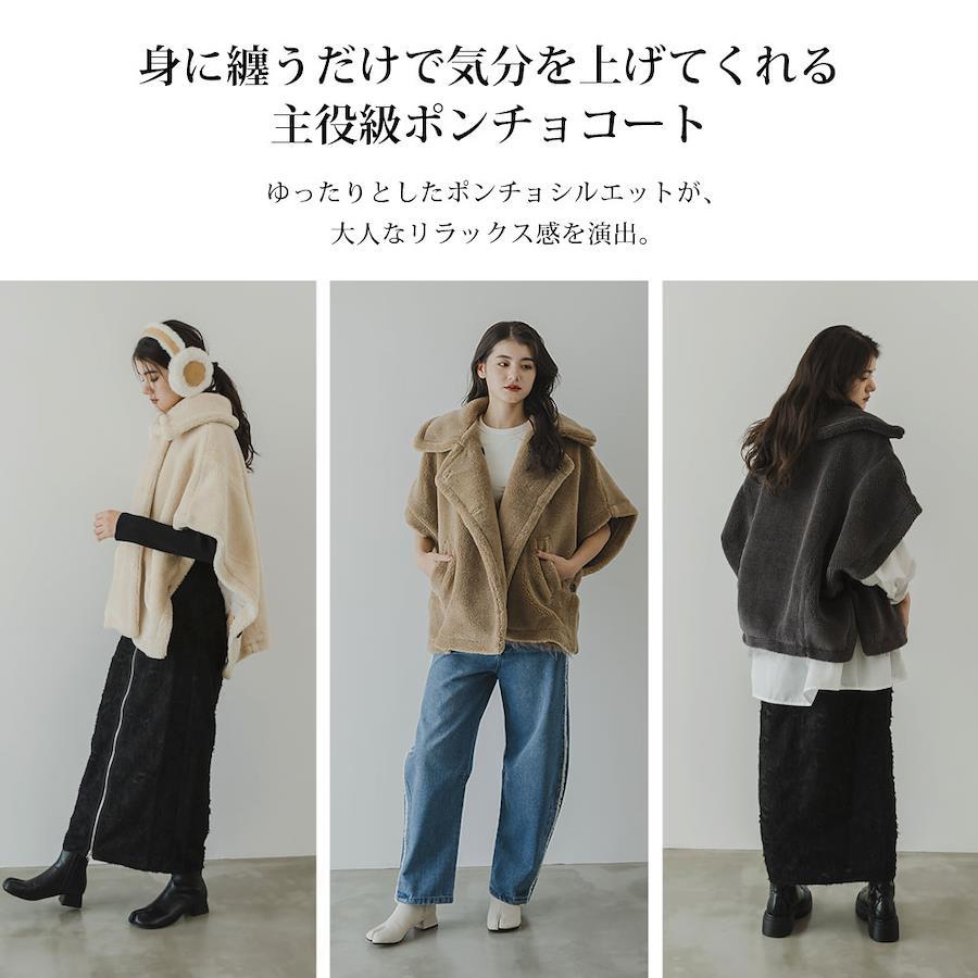 ゆったりとしたポンチョシルエットが、大人なリラックス感を演出。
