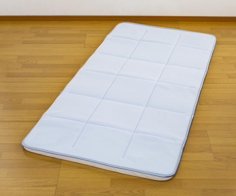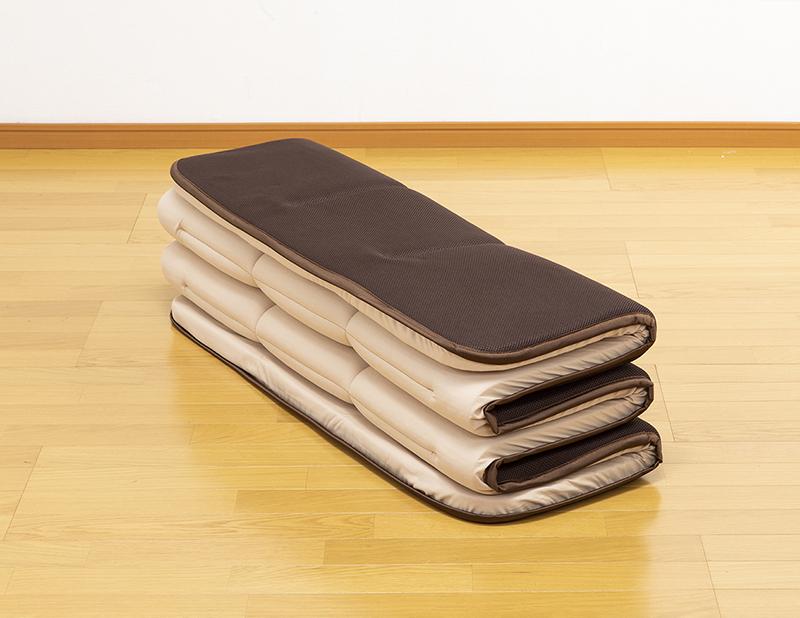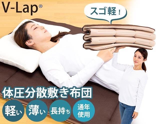 ★帝人の機能素材「V-lap」を使った軽くコンパクトにもなる敷布団!*軽い・薄い・長持ち・通年使用という4要素を兼ね備えた帝人ブランドの敷布団です。◇V-lapとはタテ型繊維なので、軽量で弾力性と通気性が高いのが特徴です。性能が評価され、公共交通機関の背もたれ部分にも採用されています。このV-lapを中綿に使用することで薄くて軽い、しかもヘタりにくい敷布団ができあがりました。*体圧分散効果も高いとの評価(自社試験データ有)で、軽量敷布団は帝人のロングセラーモデルとなっています。*リバーシブル構造で片面は通気性の良いダブルラッセル、もう片面は保温性のある生地のため、春夏(ダブルラッセル側)、秋冬(生地側)でオールシーズンご使用いただけます。*普通の敷布団の1/2の重さなので、女性やご年配の方でも簡単に持ち運べて布団の上げ下ろしや干す作業がとても楽になります。