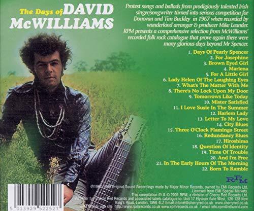 UK repressing of this 2001 collection. David McWilliams was an Irish Folk Rock artist who, in 1967, released three albums of his own material on the Major Minor label. An amazing period of productivity matched by the amazing consistency of quality throughout all the material he wrote and recorded. Musically he backed himself on six and 12 string guitar with further arrangements and orchestration provided by the then wunderkind producer Mike Leander. The combination of McWilliams heartfelt lyrics and songstyle with Leander's evocative arrangements of the simple melodies still sound bewitching today. RPM.