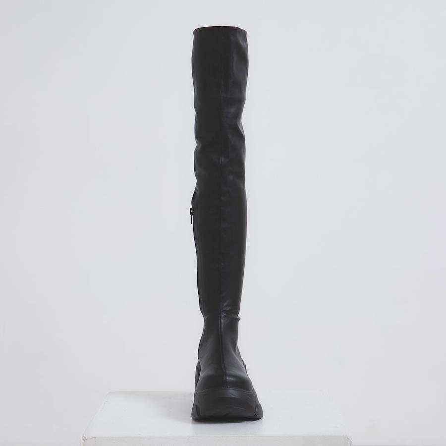夢展望人気NO.1のニーハイブーツがRoseオリジナルデザインとなって新登場♪【デザイン】ボリューム感のある厚底ソールとまるいトゥデザインで、ガーリースタイルにも履きやすいデザインのニーハイブーツ。スリットや筒丈をはじめ、計算されたシルエットが程よくフィットしてくれ、ズレ落ちにくくストレスフリーに履いていただけます。ヒール6.5㎝、ストーム4.5㎝と高低差が少なく安定感があるのに、脚長&美脚効果抜群でモデル級バランスに◎内側にはサイドファスナー付きで脱ぎ履きがとっても楽ちんです♪※スリムタイプの筒幅となりますので、タイツやソックスをご着用になる方や筒幅にゆとりをご希望の方は、ワンサイズ上のサイズをご購入いただくことをおすすめいたします。【素材】シーズンムード高まるスウェード素材と、合皮素材の2種類を使用しています。スウェード素材は柔らかく、スムース合皮素材は張り感のある素材感です。【コーディネート】ミニ丈ボトムと相性抜群のニーハイブーツデザインで、Y2Kやバレエコア等のトレンドスタイリングもお楽しみいただけます♪足の露出を最大限に抑えてくれるので、寒い季節も防寒してくれてこの秋冬大活躍間違いなしのアイテムです!※こちらの商品は筒幅が細身の【スリムタイプ】になっております。筒幅サイズをご確認のうえ、ご購入いただくのをおすすめします。※スエード素材については、摩擦による色移り・色褪せの可能性がございますので水分や湿気の多い雨の日のご使用はお控えください。《生産国》中国