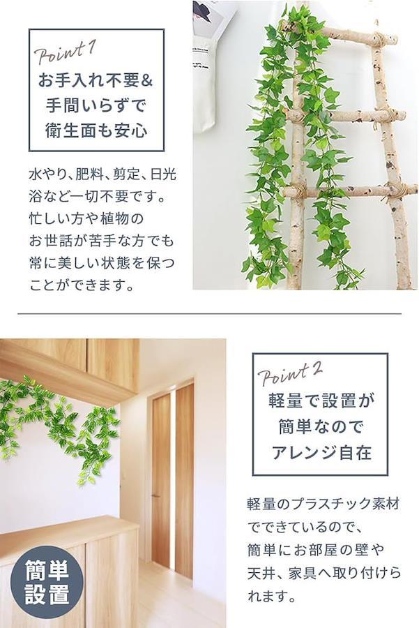 4種類の葉っぱ:ゴールデンポトス、グリーンポトス、クリーパー、葡萄の4種類の葉っぱからお選びいただけます ゴールデンポトスは斑模様のポトス、グリーンポトスは斑の入っていない緑一色のポトスです 3種類の形状、長さ: 2m1本のタイプは葉っぱの数が264枚、蔓の部分に針金が入っているので、自由に折り曲げて飾ることができます。