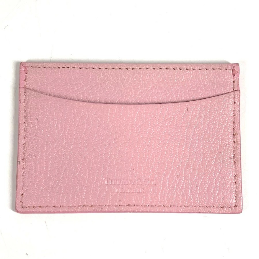 TIFFANY&Co. Tiffany Logo Business Card Holder/Pass Case/Card Case, Leather, Unisex, Pink [Used]