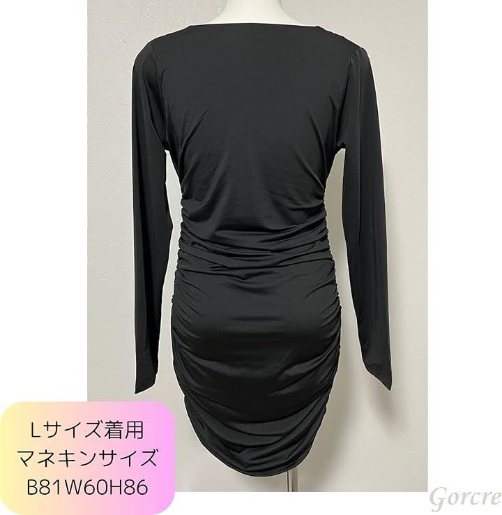 スリムフィットでボディコンタイプ♫ギャザーでピタッとし過ぎないから、腰回りのちょい体型カバーで上品な印象に。艶やかさとフェミニンで大人の女性の雰囲気を演出♬
