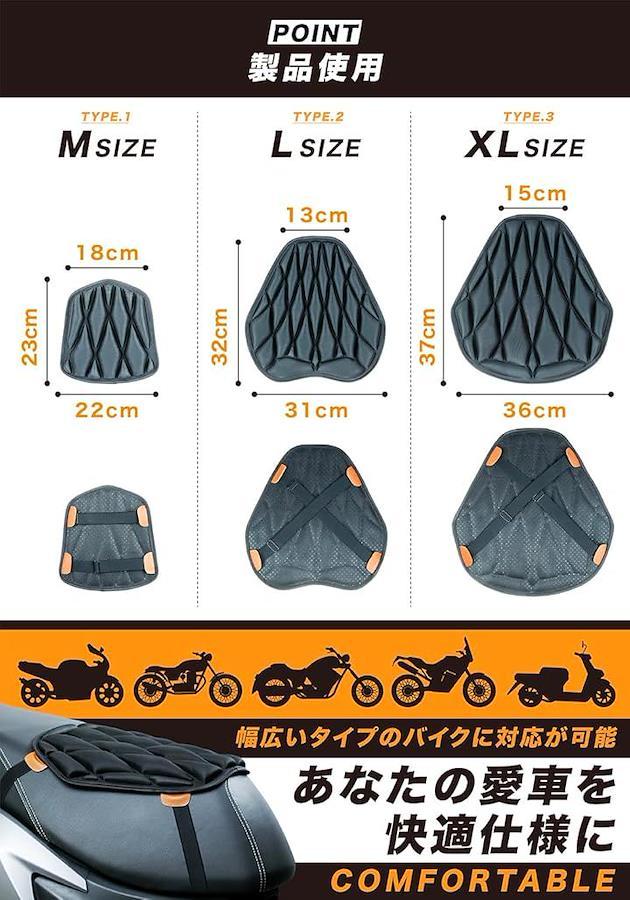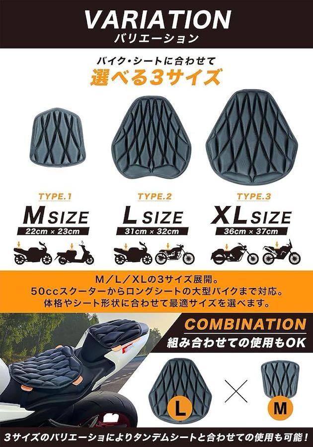 M・L・XLの3サイズ展開で、50ccスクーターから大型バイクまで対応します。