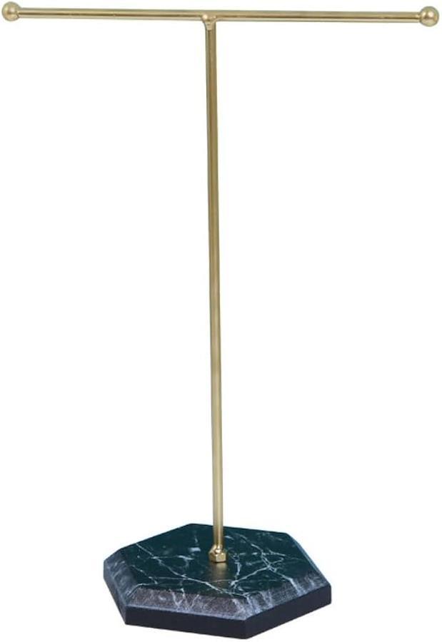 「高級感あるデザイン」ゴールドのT字バーに黒い大理石の土台。