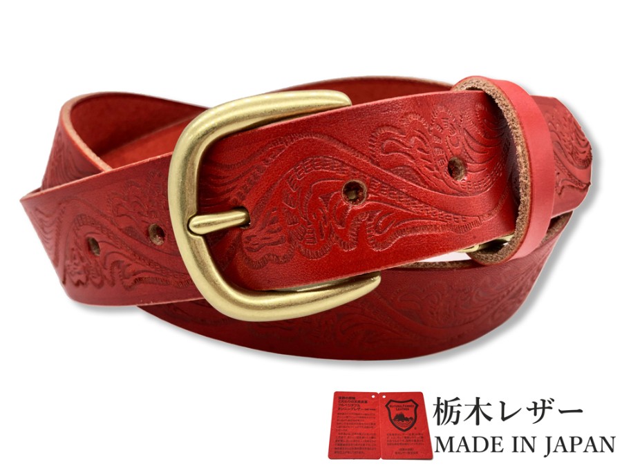 Tochigi Leather Belt for Men, Genuine Cowhide Leather, Casual, 35mm, 2 Sizes, Embossed Craft Finish, 6 Colors, Made in Japan, Suitable for Denim Jeans, Men's & Women's.