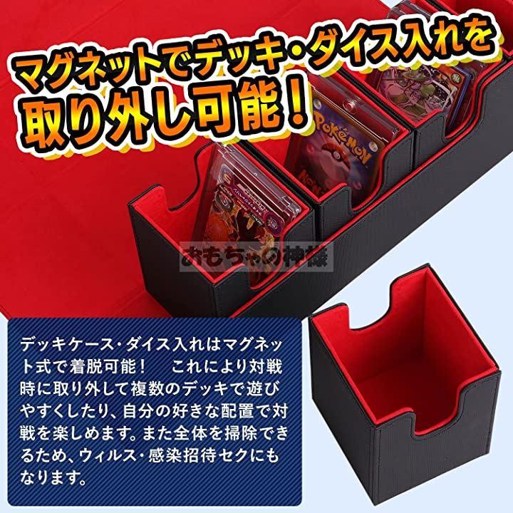 ・「マグネットでデッキ・ダイス入れを取り外し可能。」デッキケース・ダイス入れはマグネット式で着脱可能。 これにより対戦時に取り外して複数のデッキで遊びやすくしたり、自分の好きな配置で対戦を楽しめます。