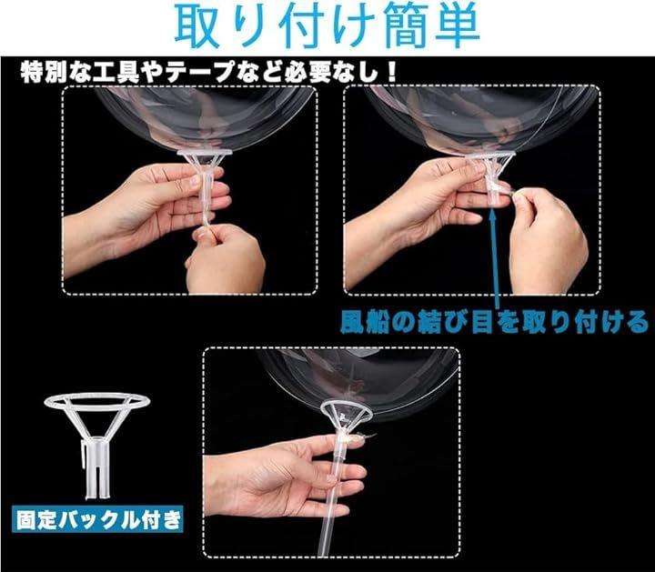 「透明なスティック」本製品はスティク部分も固定スタンド部分も透明で作っているため、風船の色味を邪魔しないデザインになっています。