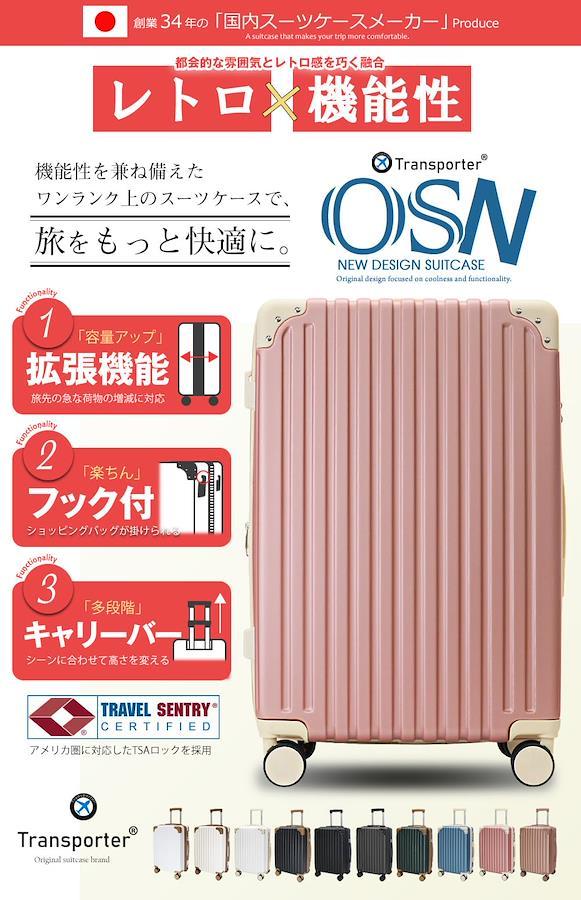 全体サイズ:【スーツケース 機内持ち込み Sサイズ】約横幅38.5×高さ56×奥行24cm(拡張後+約5cm) 、【スーツケース Mサイズ】約横幅45×高さ66×奥行28.5cm(拡張後+約5cm)、【スーツケース Lサイズ】約横幅51×高さ75.5×奥行32cm(拡張後+約5cm) ※全体サイズは車輪や持ち手など全て含めた値です。 ケースサイズ:【Sサイズ】約横幅35×高さ49.5×奥行24cm(拡張後+約5cm) 、【Mサイズ】約横幅42.5×高さ59.5×奥行28.5cm(拡張後+約5cm)、【Lサイズ】約横幅47.5×高さ69.5×奥行32cm(拡張後+約5cm) 重量:【Sサイズ】約2.65kg、【Mサイズ】約3.35kg、【Lサイズ】約4.1kg、【トランク】約850g キャリーバー 多段階調節可能:【Sサイズ】最長約100cm、二段目約77.5cm、【Mサイズ】最長約100.5cm、二段目約88.5cm、三段目約73.5cm、【Lサイズ】最長約112cm、二段目約93.5cm スーツケース素材:ABS エンボス加工、傷つきにくい。 鍵:アメリカ圏内での空港に預ける際に鍵をかけたままキャリーケースを預けることができる世界基準のTSAロックを搭載。開錠は、ダイヤルロックなので鍵をなくす心配もありません。※鍵は航空会社検査専用のため本製品には付属しておりません。