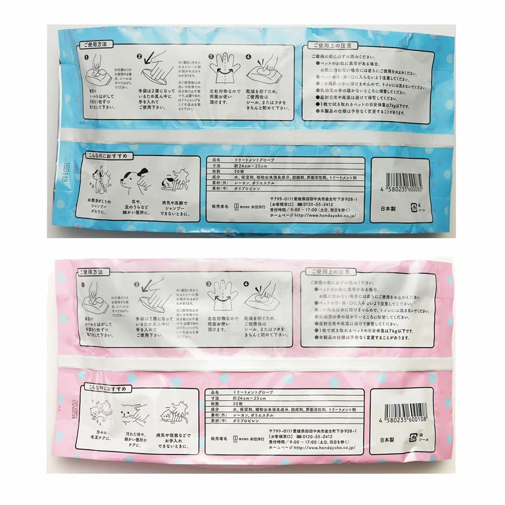 - 成分 -水、保湿剤、植物由来消臭成分、防腐剤、界面活性剤、トリートメント剤- ご使用上の注意 -●ペットのお肌に異常がある場合、お肌に合わない場合には直ちにご使用をお止めください。●ペットの目・鼻・口に入らないよう注意してください。●この商品は水に溶けませんので、トイレには流さないでください。●乳幼児の手の届かないところに保管してください。●直射日光や高温は避けて保管してください。●1枚で拭き取れるペットの目安体重は7kg以下です。●本製品の仕様は予告なく変更することがあります。日本製