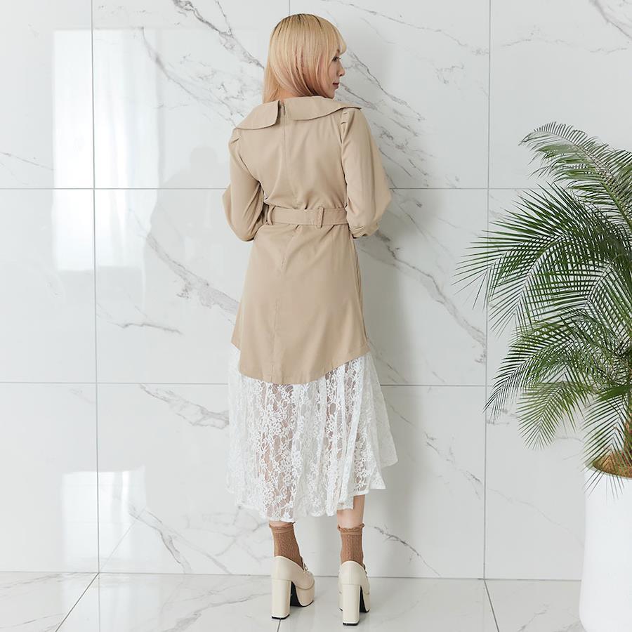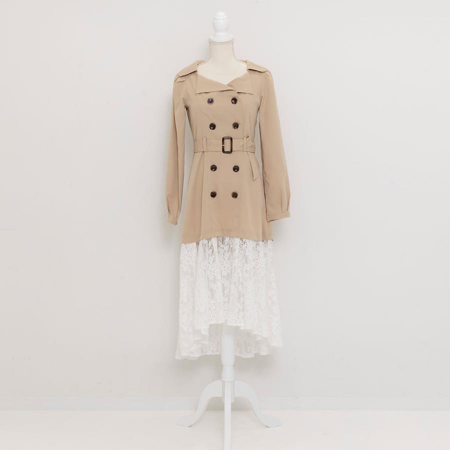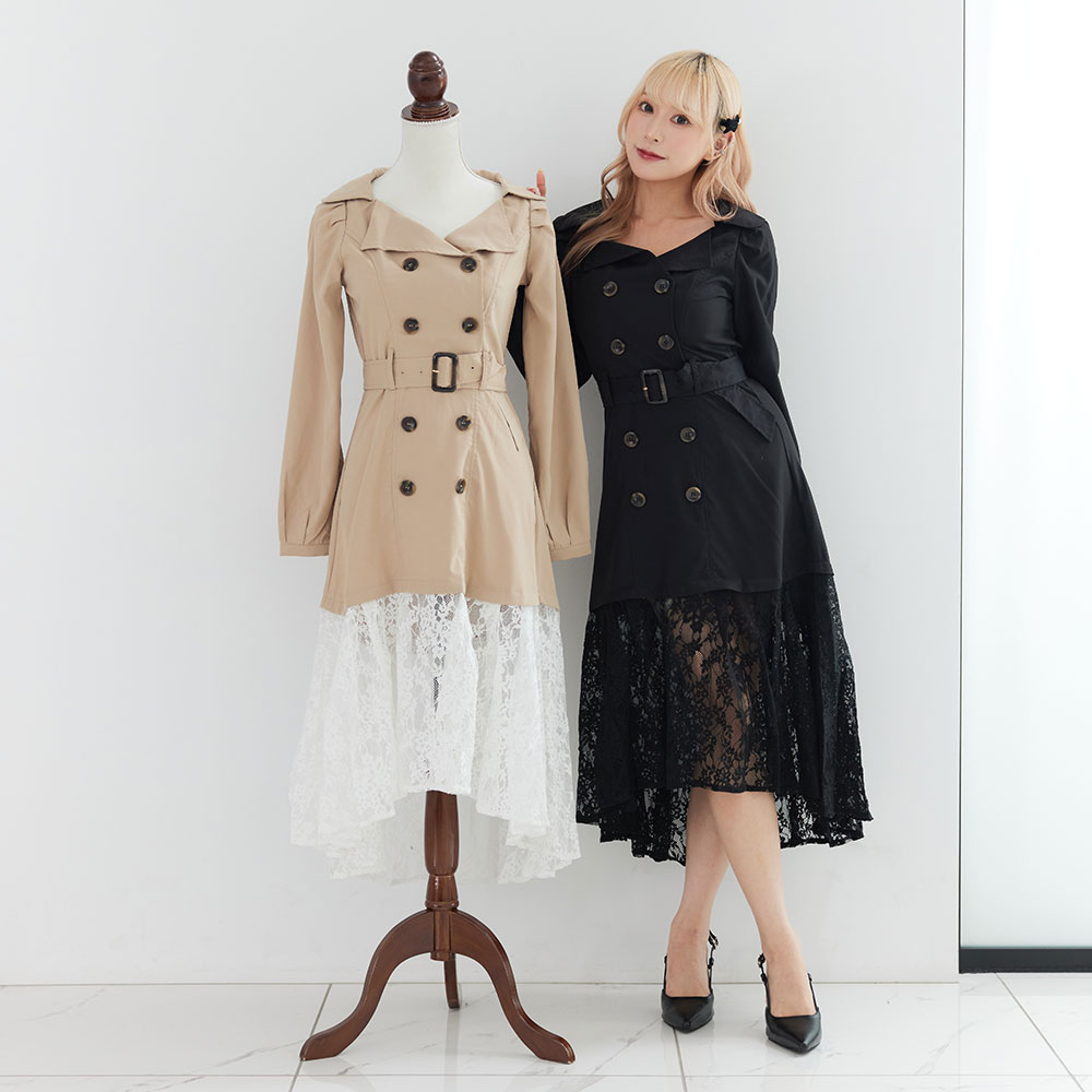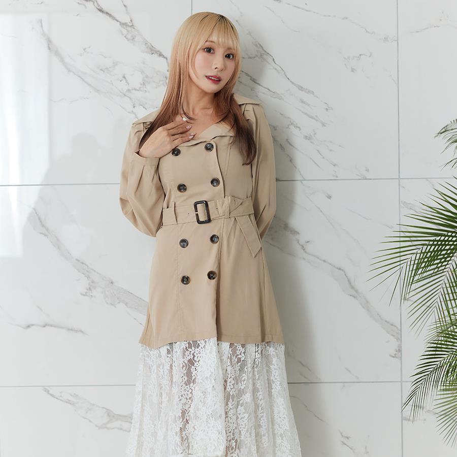 トレンチデザインにレースを落とし込んだデザイン性の高い一枚。デコルテが綺麗に見えるスクエアネックを採用し、立体的なパフスリーブが女性らしさを引き立たせてくれます。さらに、付属のベルトでウエストマークができるのでスタイルアップ効果も!360°どこから見ても綺麗なシルエットに仕上げました。