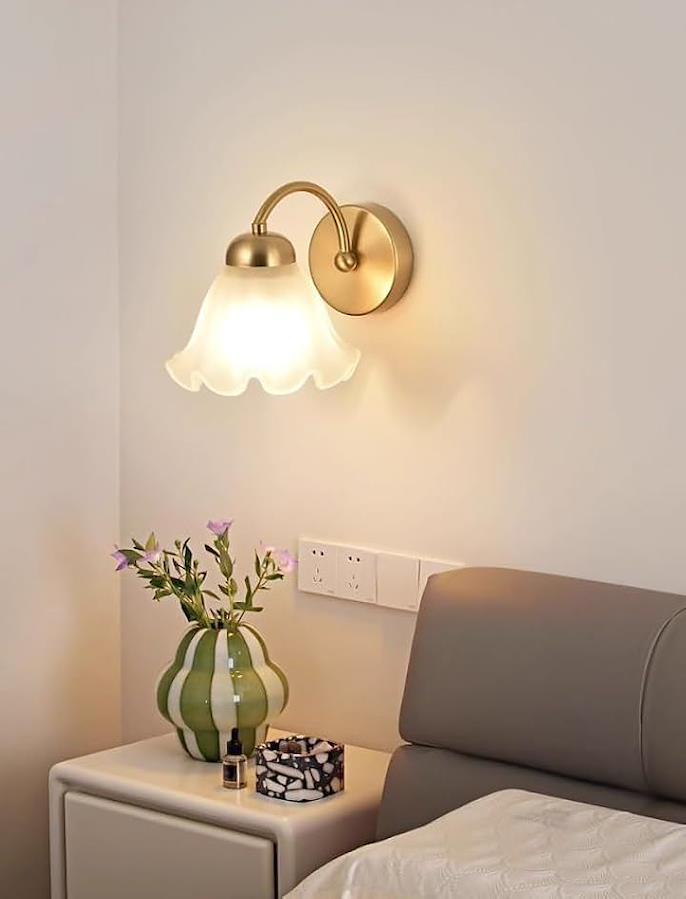 TT Nordic Wall Lamp, Creamy Wind Flower Glass, New French Pastoral Style, Wall Decorative Light, Ambient Sense, Entryway, Bedroom Wall Light, Lily of the Valley Glass