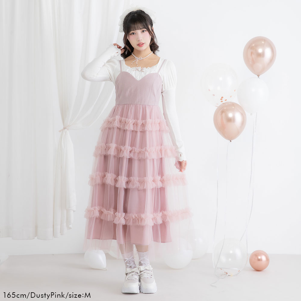 ドーリーなチュールティアードキャミワンピースのご紹介。