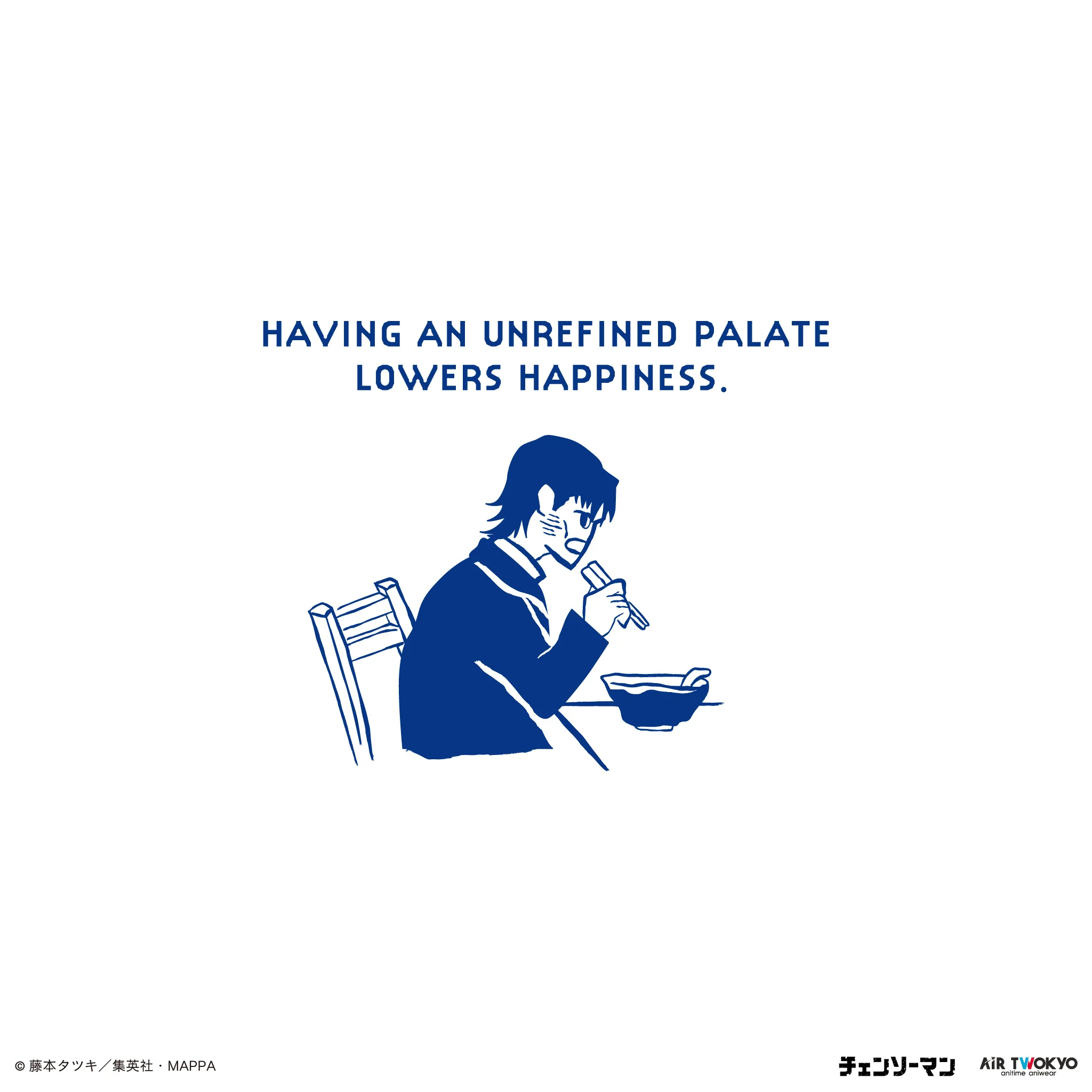 ※ご注文の場合は、予約注文商品と必ずカートを分けてご注文下さい。カートを分けずにご注文された場合、予約商品と一緒に配送されるため、配送が遅くなります。予めご了承ください。第8話にてデンジ、早川アキ、パワー、姫野が一緒に中華料理屋でラーメンを食べているシーンをデザイン胸の英文はパワーの台詞を採用し、背中はラーメンを食べ、デンジ達に話すシーンをイラスト化色:ホワイト素材:綿サイズ:S~XXL(サイズスペック画像ご参照)