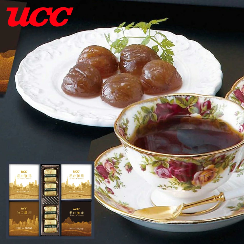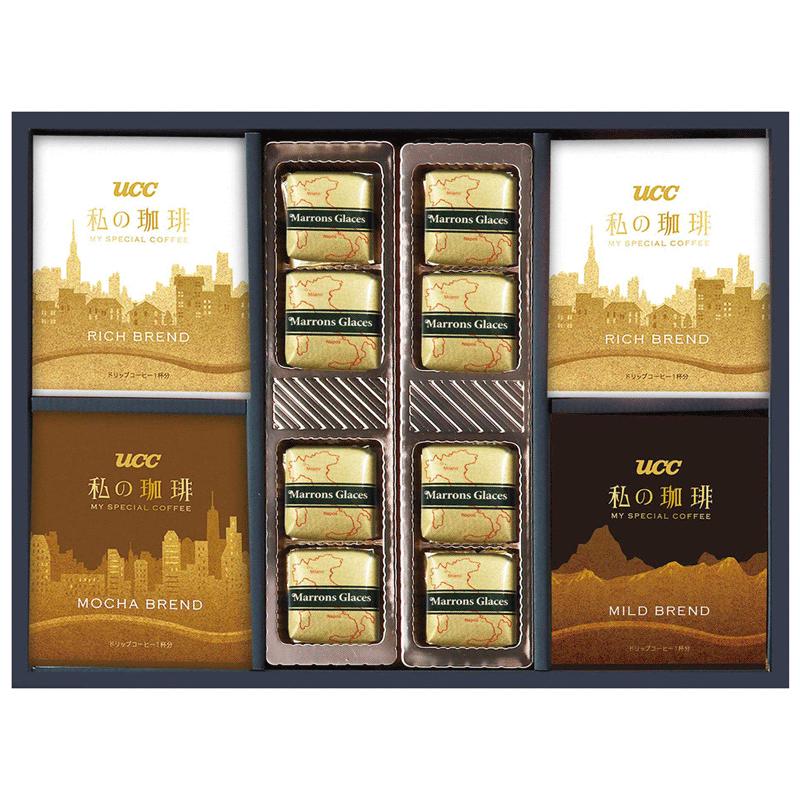 私の珈琲(リッチブレンド7g×8袋、モカブレンド7g×4袋、マイルドブレンド7g×4袋)、マロングラッセ×8個