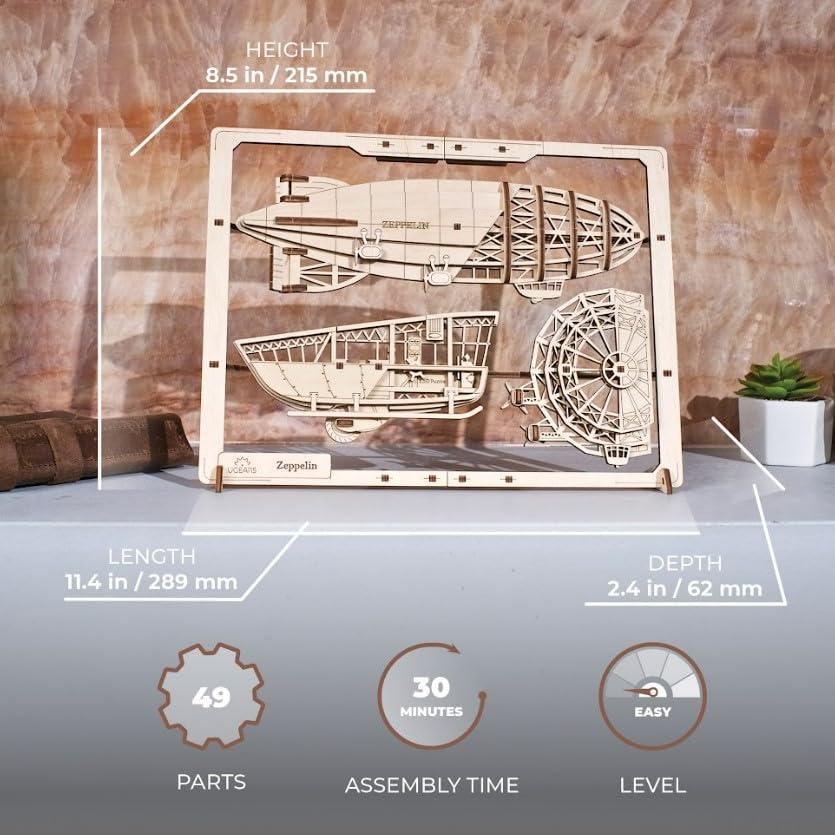 通常1-5営業日で発送:このヴィンテージ飛行船モデルは20世紀初頭のドイツの飛行船を描いています。壁に掛けたり、机や棚に飾るのに適した独自のフレームで作られています。接着剤や工具は不要のためすぐに作り始めることができます。モデルサイズ:28.9*21.5*6.2 cmパーツ数:49予想組み立て時間:0.5時間
