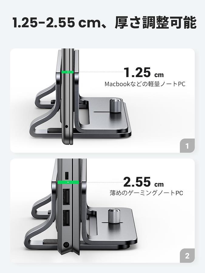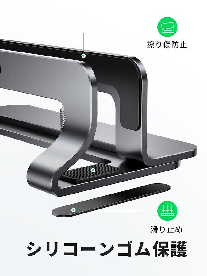 【調整可能なスロット】ノートパソコンホルダースタンドは、厚さ0.5インチから最大1インチのノートパソコンにフィットします。 ネジをひねることで簡単にスロットを拡張でき、工具が不要です。 【幅広い互換性】このノートパソコン用スタンドは、MacBook Air、MacBook Pro、Microsoft Surface、Samsung Galaxy Book、Lenovo Ideapad 3、HPノートブック、Dell Chromebook、ThinkPad、その他の17.3インチまでのコンピューターに対応しています。 【頑丈で安定性】 デスク用縦型ノートパソコンスタンドはプレミアムアルミニウム合金製で、ノートパソコンを保持するための優れた安定性を確保します。 ベースもシリコンパッドで覆われており、滑りを防ぎます。 【傷防止】 デスクノートパソコンスタンドホルダーは、スロットの内側に滑り止めシリコンパッドで覆われており、PCを傷から完全に保護します。 【24ヶ月の保証期間】当店でご購入の製品は24ヶ月間の保証サービスをご提供しております。お客様が製品を購入された時点から24ヶ月後の応当日まで保証いたします。 ご注意:お客様または第三者による故意の破損が認められる場合は、保証の対象外となります。