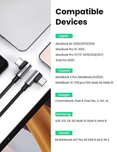 UGREEN革新デザイン:usb c to cケーブル(usb 2.0)は革新的なL字型、両方とも90度を設計します。L字なので、ケーブルの取り回しが非常に楽です。充電しながらゲームをしたり、動画を見たりする際、邪魔にならず。また、過度に曲げることで断線や脱線を防ぎます。( 携帯カバーの厚さ:2.5 mm以内)最大100Wの超高速充電対応:USB PD技術に対応し、最大100W (20V*5A)まで安全かつ安定して出力できます。PD充電を実現するために、デバイスとアダプタはPD機能をサポートする必要があります。100W 87W 61W 45W 30W 18Wの電力供給PD急速充電をサポートします。(▲ご注意!モニタや映画などと対応できません。)福広い互換性:UGREEN USB C to C ケーブルはMacbook Pro 15", Macbook Pro 13", Macbook, Macbook Air 2020/2019/2018, iPad Pro 2020/2018, Google Pixel 2/3/3a XL, Galaxy Note 10/Note 10+/Note 9/S10/S10e/S10+/S9+/S8+, Nexus 6P 5X, Huawei Matebook X Pro, Matebook 13, Chromebook, Dell XPS 13, Lenovo Yoga 900 720, ThinkPad X1, Razer Blade Stealth 2018, ASUS ZenBook 3, HP Spectre notebookなど様々なUSB type cデバイスに対応できるスマホ充電ケーブるです。高品質&安心安全:L字のType cケーブル設計、頻繁にプラグを差し込んでも断線できません。また、過電圧、過熱、過電流、ショート防止等の多重保護の安全性と信頼性を向上します。耐久性と柔軟性を両立:UGREEN 5A USB Cケーブルは10000回以上の折り曲げに耐えうるまでに強化され、圧倒的な持続力を持ちます。二重に編み込まれた高耐久ナイロンにより、絡みにくい、取り回しやすい、機能性とデザイン性を両立しました。