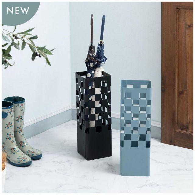 ●スタイリッシュなチェック模様のシンプルな傘立て。●デザイン性溢れる形は置くだけで玄関のアクセントに。●狭いスペースでも置きやすいスリムな形状なので場所をとりません。