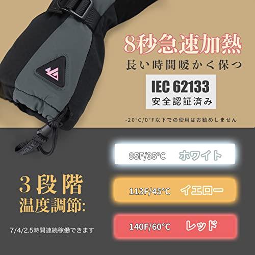3営業日以内に発送≪新品未開封品≫:【優れた保温効果】:電熱手袋の表面は山羊革と高弾性生地を采用し、3重の防水生地を使用し、内部には3MのThinsulateコットンを2重に詰めており、より優れた保温効果があります。複合繊維加熱糸を内蔵し、加熱は均一で、加熱過程は8秒しかかからず、両手を素早く温めることができます。折り曲げて壊れにくい、スキー、長距離サイクリング、釣り、狩りなどの冬の野外活動や野外作業のmust装備である、同時にルノーの人々を助けることができ、一日中あなたの手を暖かくて居心地よくしています。【長持ちするバッテリー寿命と安全性】: 7.4V 2200mah 容量のリチウム電池2 つを内蔵し、低温三元リチウム電池は、-20℃でも効果的に熱を発生させることができます。(-20°C/0°F以下での使用はお勧めしません。) バイク 電熱グローブは3段階の温度制御を備えて、スイッチの色の白、黄、赤は低中高3段に対応して、温度はそれぞれ95F/35°C、113F/45°Cと140F/60°Cに対応して、航続時間が約7/4/2.5時間、長い時間の熱保存でき、バッテリーは IEC 62133 国際安全規格に準拠ており、安全で安定しています。【急速充電対応 & 携帯便利 】:USB AとType-Cに対応した2口充電ケーブルは軽量で携帯性が高く、各種および各国の充電器に対応しており、いつでもどこでも充電できるようになっています。 15W以上の急速充電器に対応し、4時間でフル充電できるので、市販の一般的な充電器の平均充電時間(6時間)に比べて2時間短縮できます。【気配りの工芸設計】:山羊革の手のひら保護設計は柔らかさを増し、滑りにくく、耐摩耗性が高めます。手の甲の SBR ソフトゴムは衝突防止機能を高めます。ス