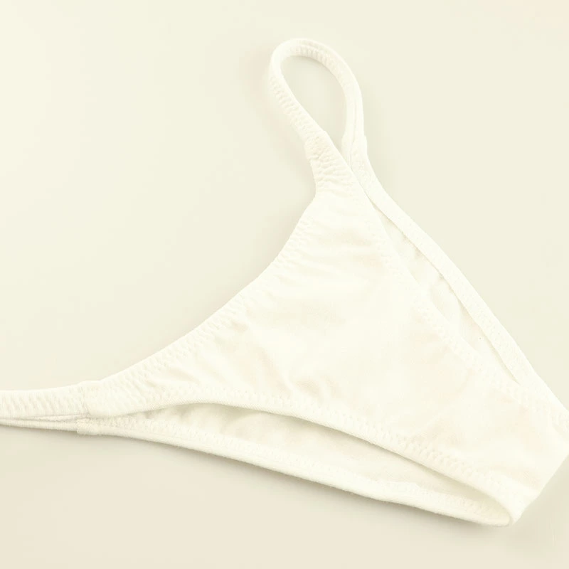 綿本来の温もりがあり通気性が良く肌触りの良い記事で伸縮性にも優れているのが特徴のベア天生地を使用したハーフバックビキニになります。サイドは脇細になりローライズタイプのハギ無しショーツになります。極小タイプになりますので、男性が着用される場合は小さ目なサイズ感をご理解ください。