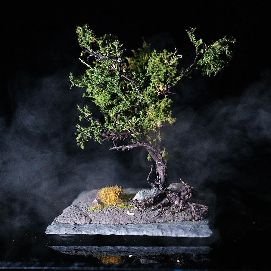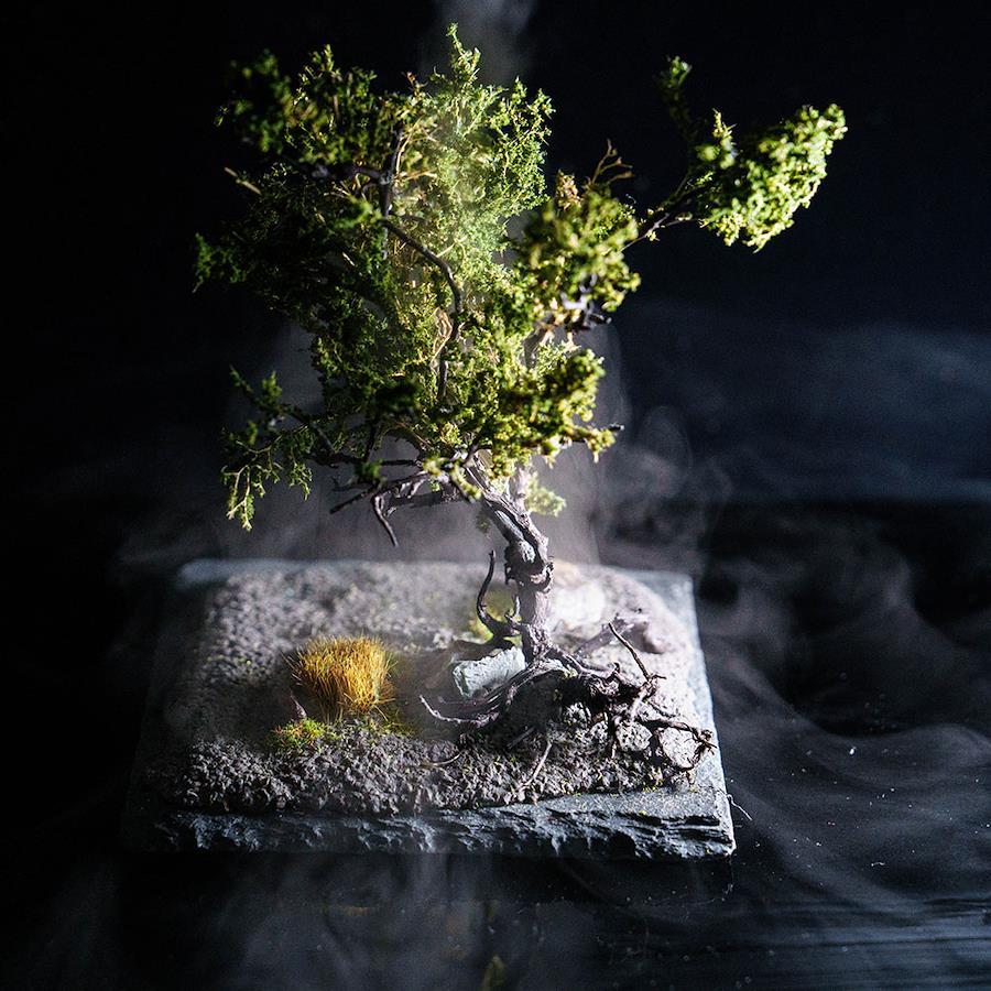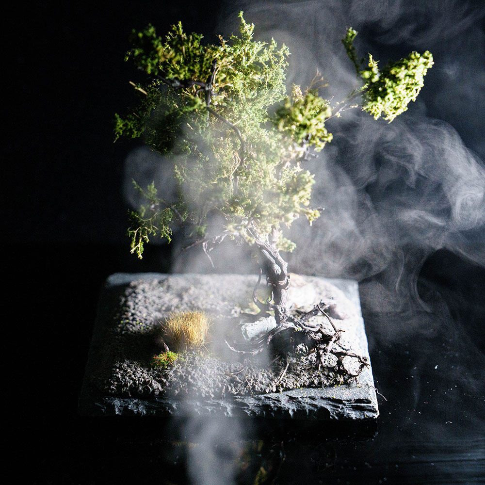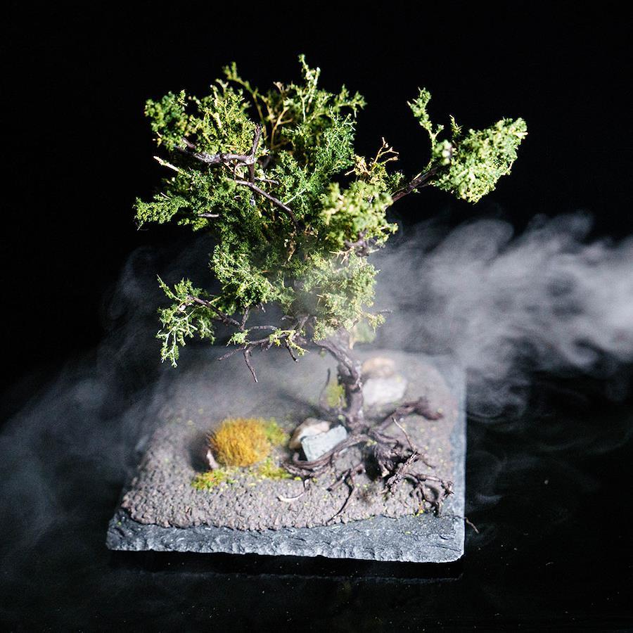 The transducer itself, which is the fog generating part of, is small enough to be incorporated inside a model or diorama.