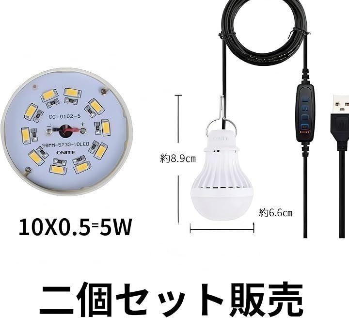 セット内容: LED電球2個セット、調光スイッチ付きUSB接続ケーブル、取り付け用フック付属