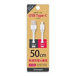 USB Type-C USB Type-A コネクタ USBフラットケーブル iCharger ホワイト PG-CUC05M17 [50cm]