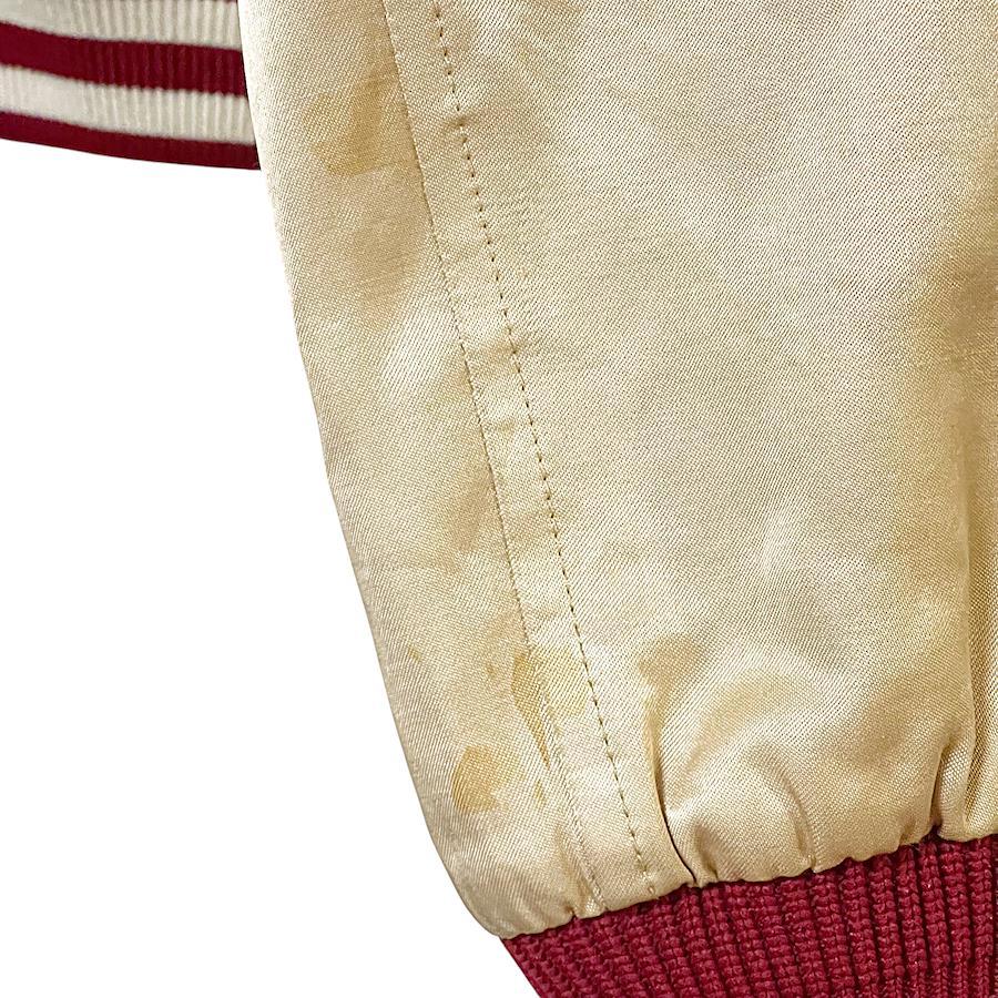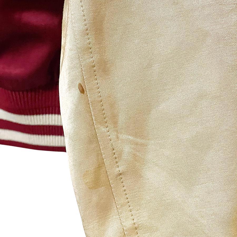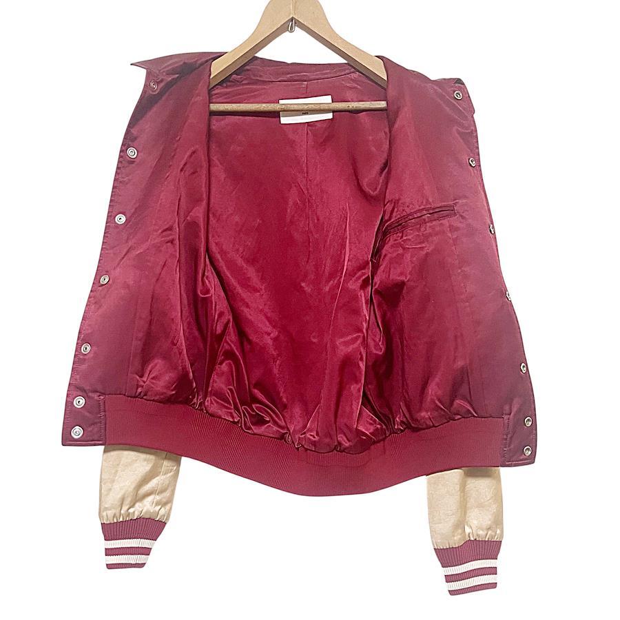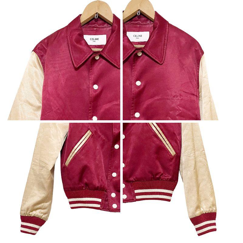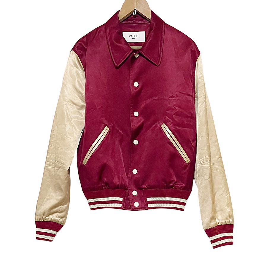 【ブランド】CELINE【品名】サテン テディジャケット【対象】メンズ/レディース【サイズ】44 S相当 実寸もご確認ください【実寸(cm)】着丈:57.5肩幅:45身幅:49袖の長さ:60*平置き採寸。多少の誤差はご容赦ください【素材】メインの生地 コットン58% ビスコース 42%【原産国】イタリア【カラー】レッド【商品状態】首元やや汚れあり。右腕にシミあり。中古品につき軽微な傷や汚れなどはご容赦くださいませ。【商品番号】OJ12【付属品】なし【備考】-