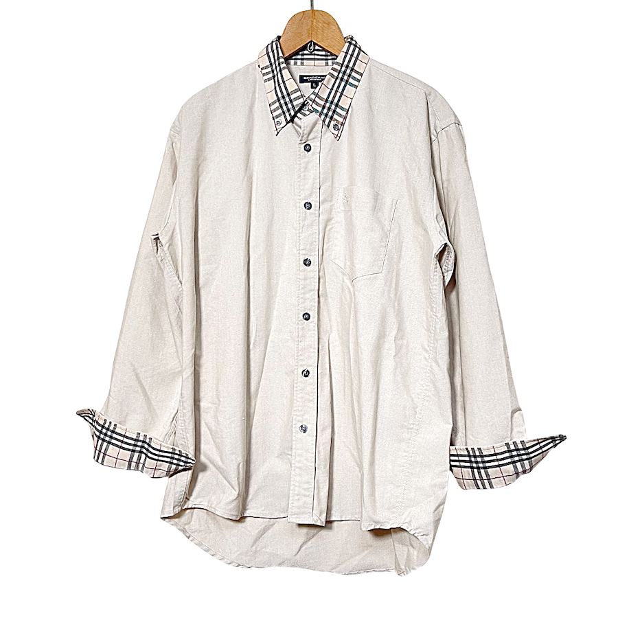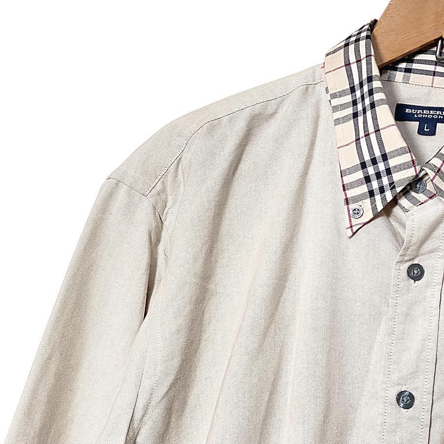 【ブランド】Burberry【品名】メンズ長袖シャツ ボタンダウン【対象】メンズ【サイズ】L【実寸(cm)】サイズ L *必ず実寸もご参考ください。着丈:77肩幅:49身幅:58袖の長さ:58*平置き採寸。多少の誤差はご容赦ください【素材】ポリエステル65%、コットン35%【原産国】中国【カラー】【商品状態】ベージュ系【商品番号】WO6【付属品】なし【備考】-