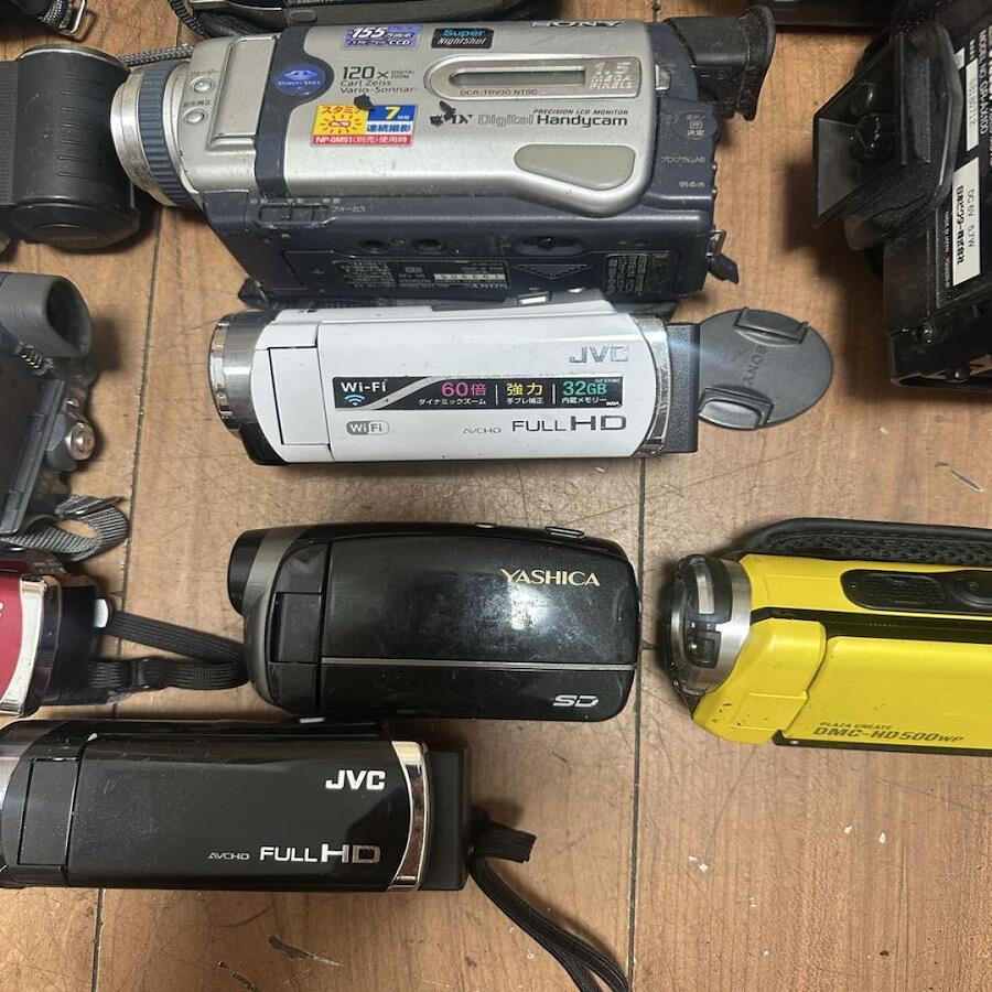 This is a large bulk lot of 17 used digital video camcorders from various manufacturers, including SONY Handycam, JVC, Panasonic, Victor, and YASHICA. 📹