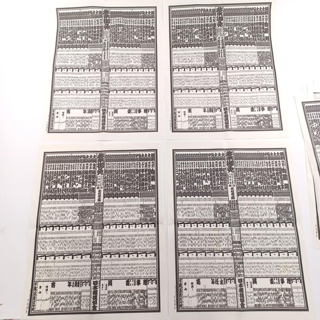 This is a large collection (bulk lot) of 32 official Japanese Sumo Wrestling ranking lists, known as Banzuke-hyo (番付表).