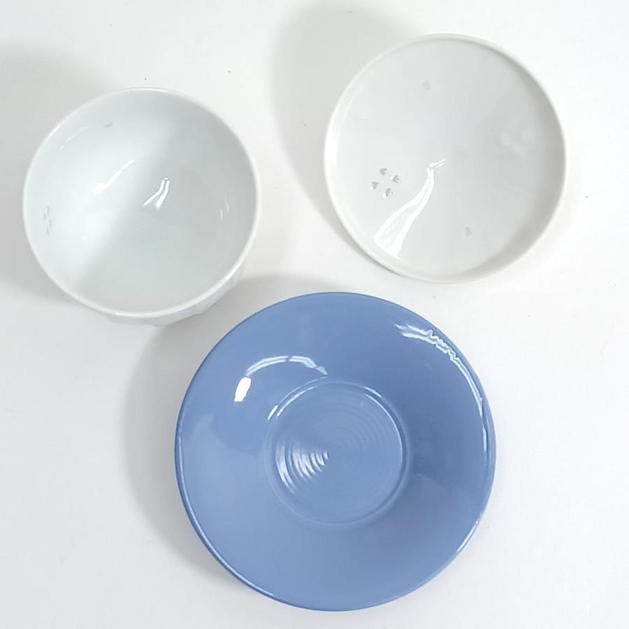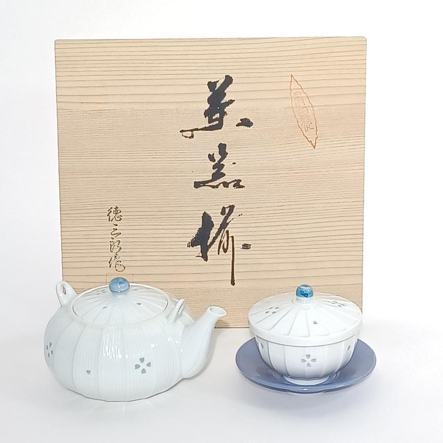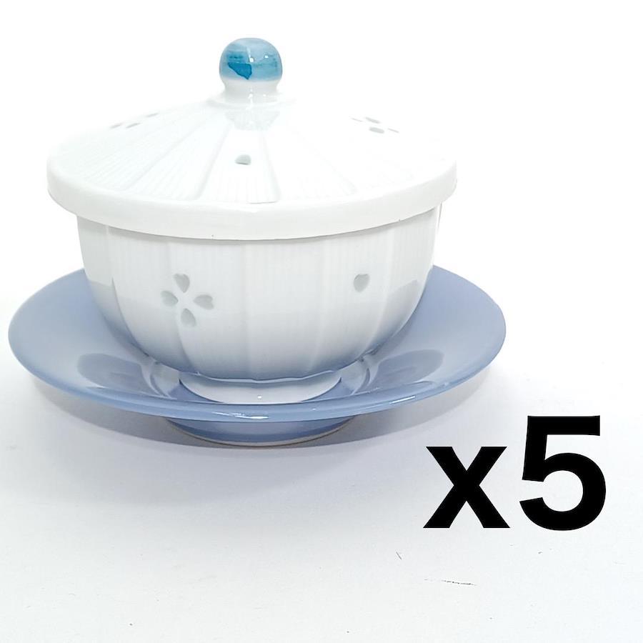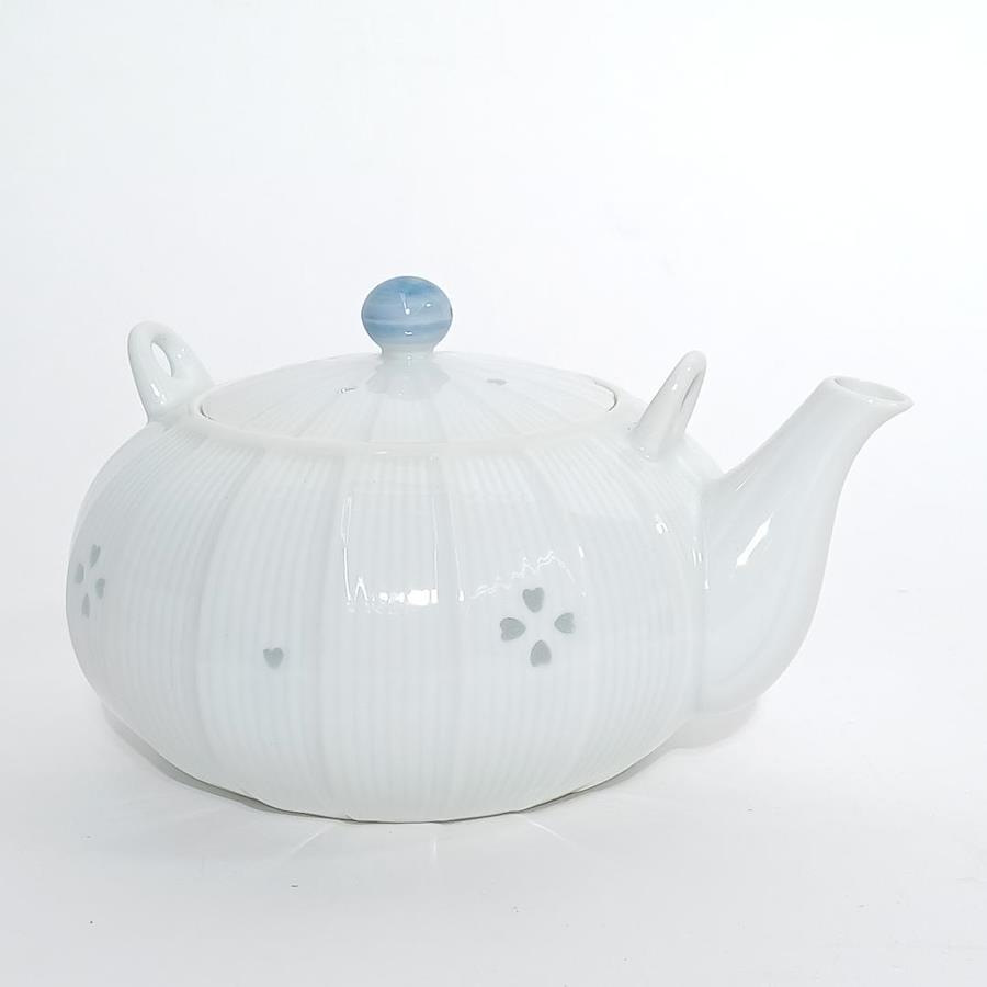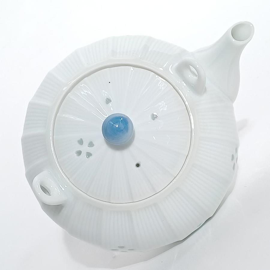 Used Japanese Kyusu Teapot & 5 Yunomi Teacups Set White Blue Vintage Pottery